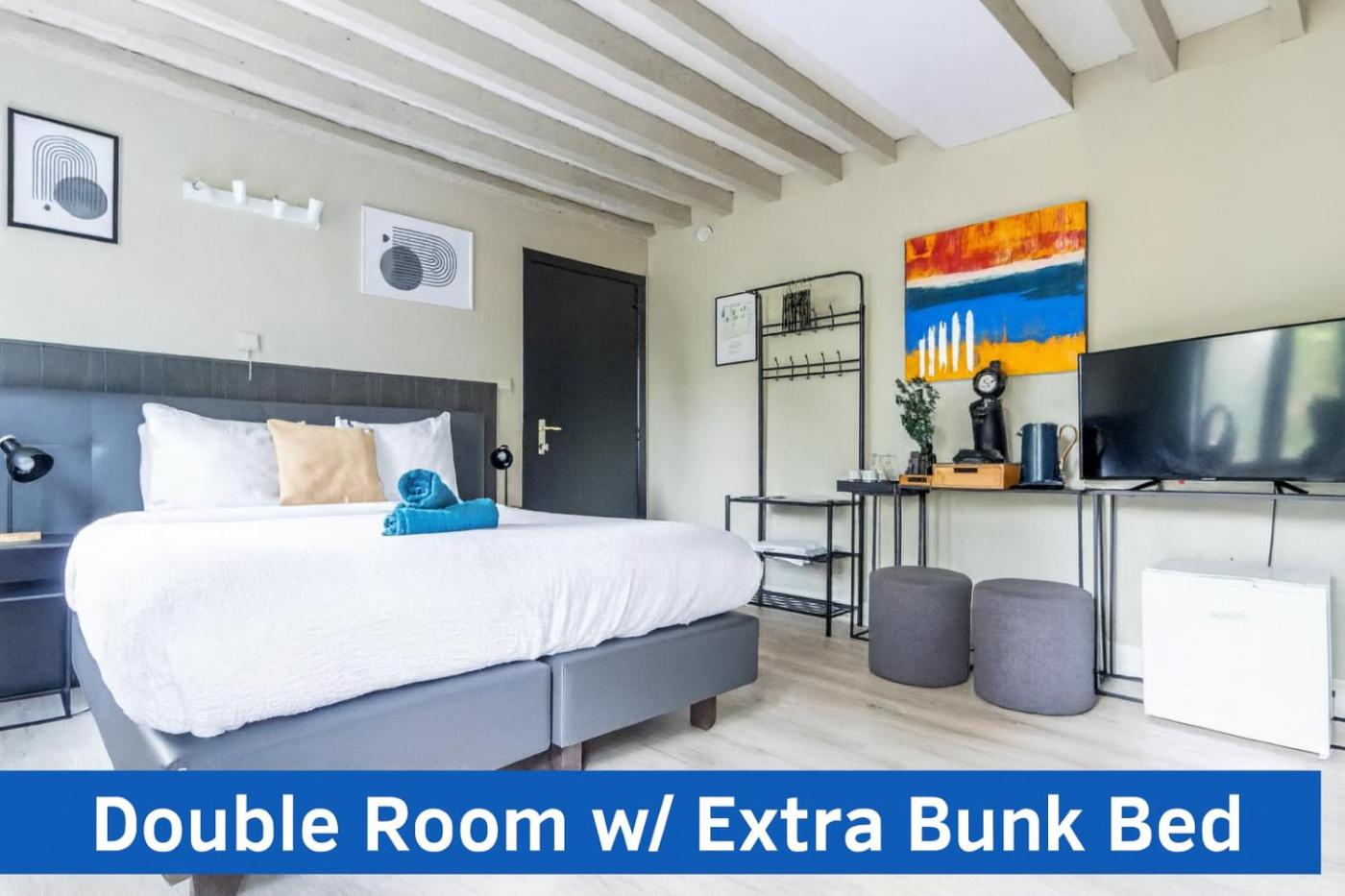 Double Room with Extra Bed. Providing free toiletries, this double room includes a private bathroom with a shower and a hairdryer. The air-conditioned double room provides a flat-screen TV with streaming services, a private entrance, a tea and coffee maker, a wardrobe as well as river views. The unit offers 3 beds. ;