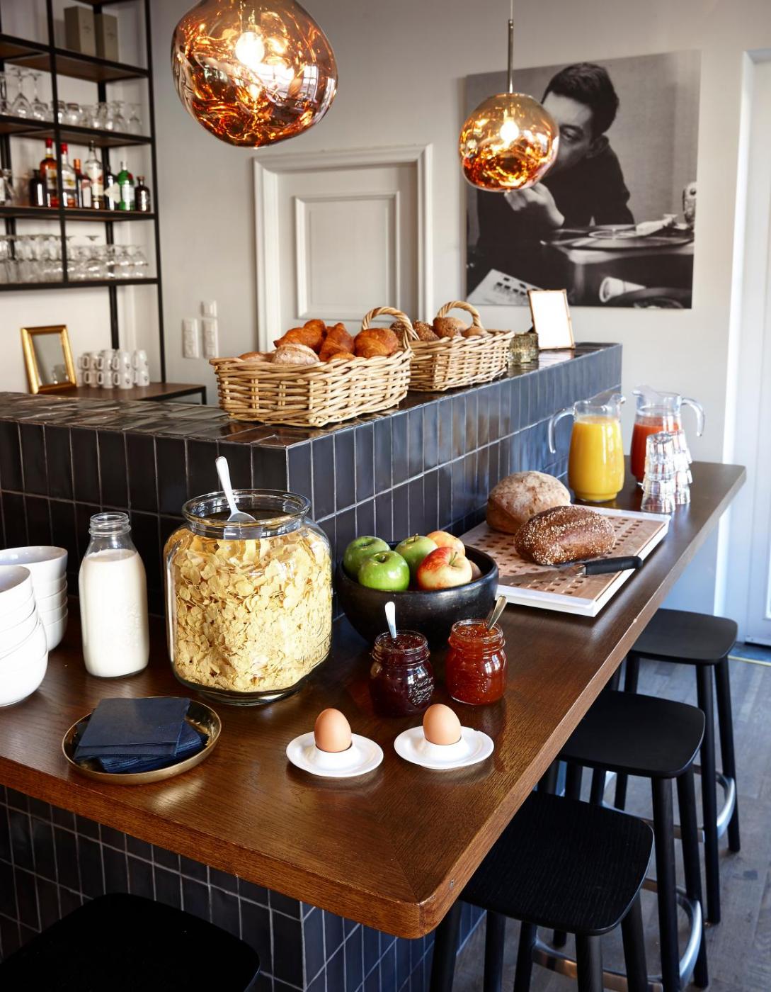 Each morning a buffet breakfast is served in the old patrician’s dining room. The Monsieur Ernest bar serves drinks including local Belgian beer inside or out on the terrace which features views of the garden and canals.