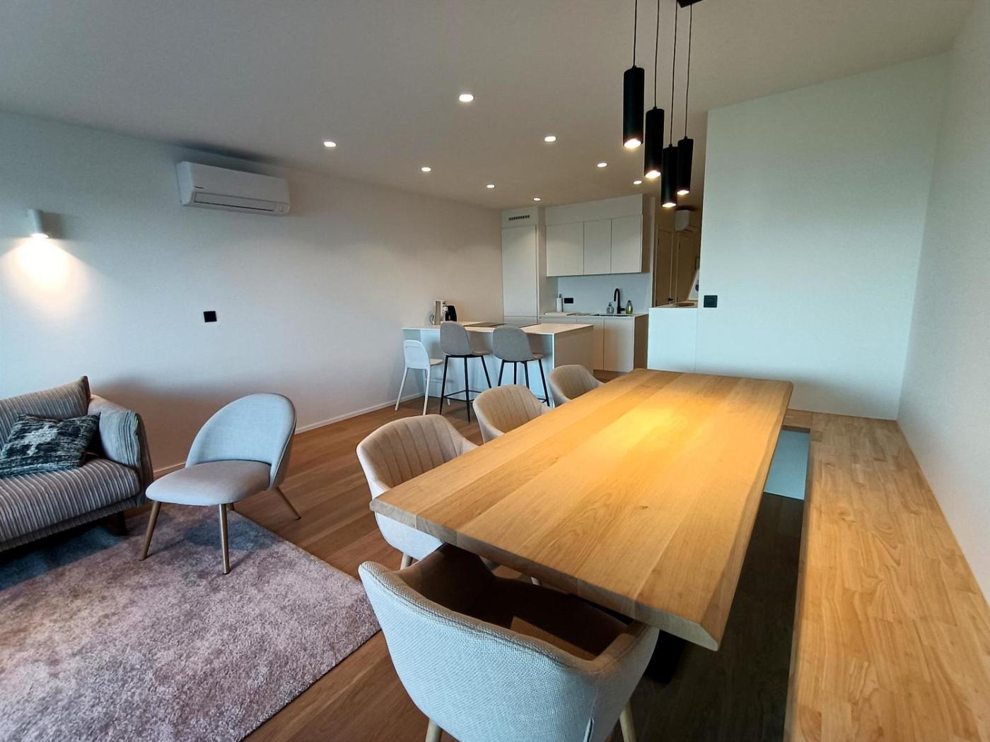 Three-Bedroom Apartment with Sea View. This apartment has a shared bathroom and heating. The apartments kitchen is available for cooking and storing food. The spacious apartment offers air conditioning, a washing machine, a minibar, as well as a terrace. The unit has 5 beds.