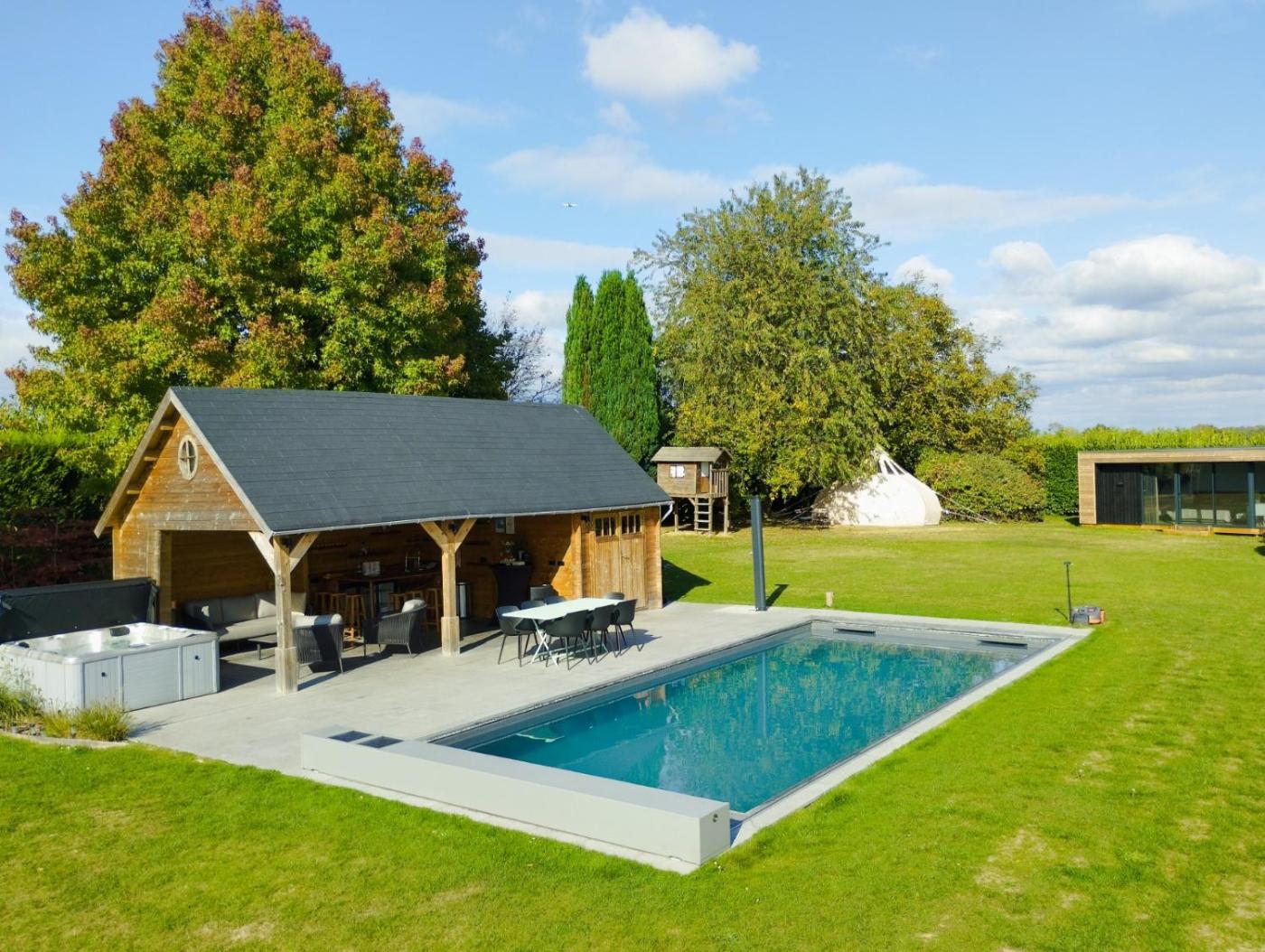 Two-Bedroom Chalet. This chalet boasts a pool with a view, hot tub and spa bath. Featuring a private entrance, this air-conditioned chalet comprises 1 living room, 2 separate bedrooms and 1 bathroom with a walk-in shower and a hairdryer. Guests will find a stovetop, a refrigerator, kitchenware and an oven in the well-fitted kitchen. The chalet also provides guests with a barbecue. Boasting a terrace with garden views, this chalet also provides a washing machine and a flat-screen TV with streaming services. The unit offers 3 beds.